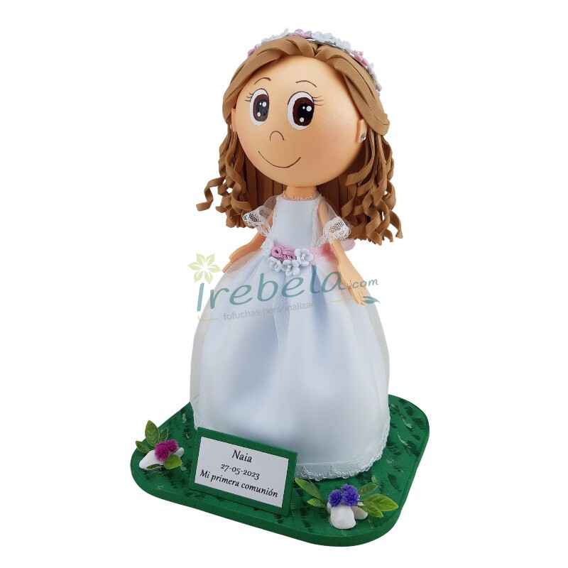 Fofucha de comunión niña con vestido de encaje, tul de lunares y corona de flores Fofucha de comunión niña con vestido de encaje, tul de lunares y corona de flores Fofucha de comunión niña con vestido de encaje, tul de lunares y corona de flores Fofucha de comunión niña con vestido de encaje, tul de lunares y corona de flores