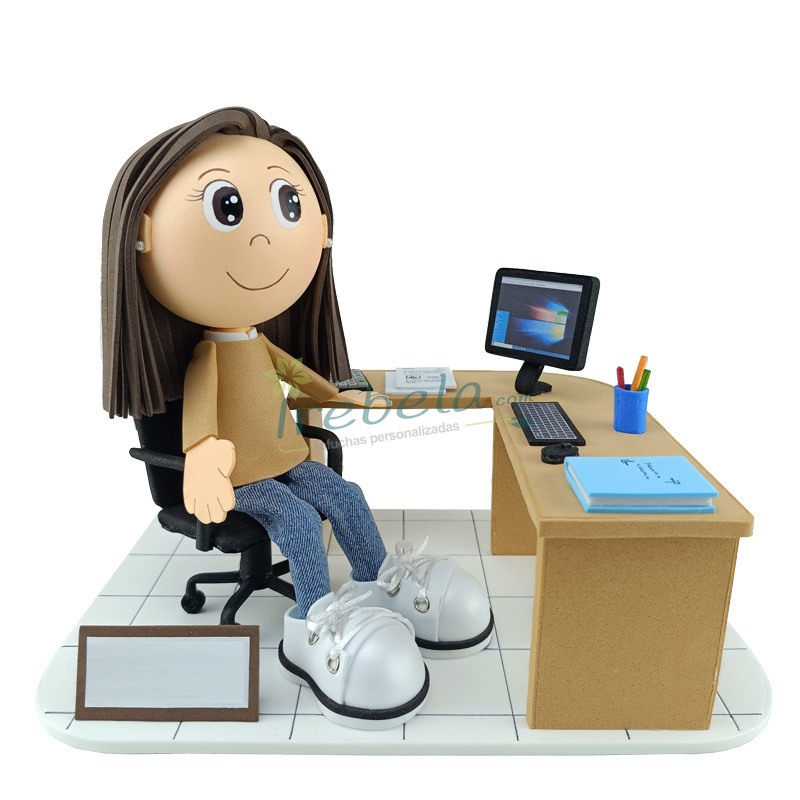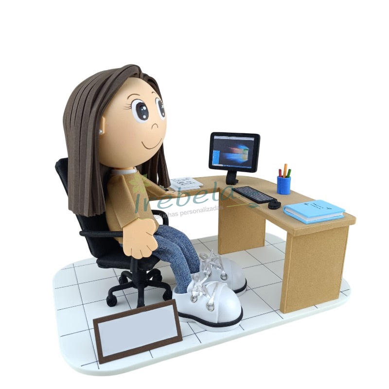 Fofucha en oficina con mesa con ala lateral