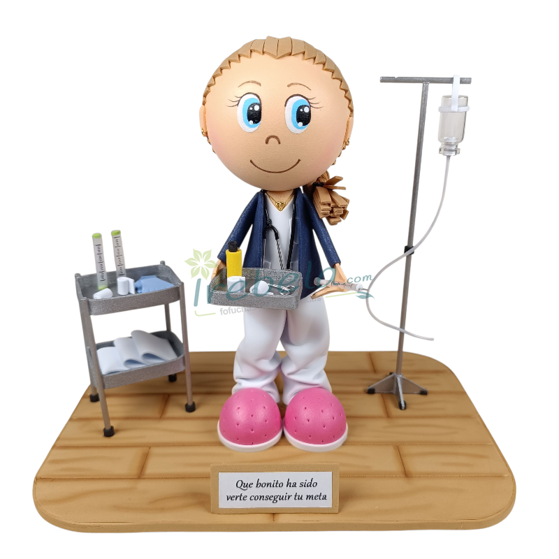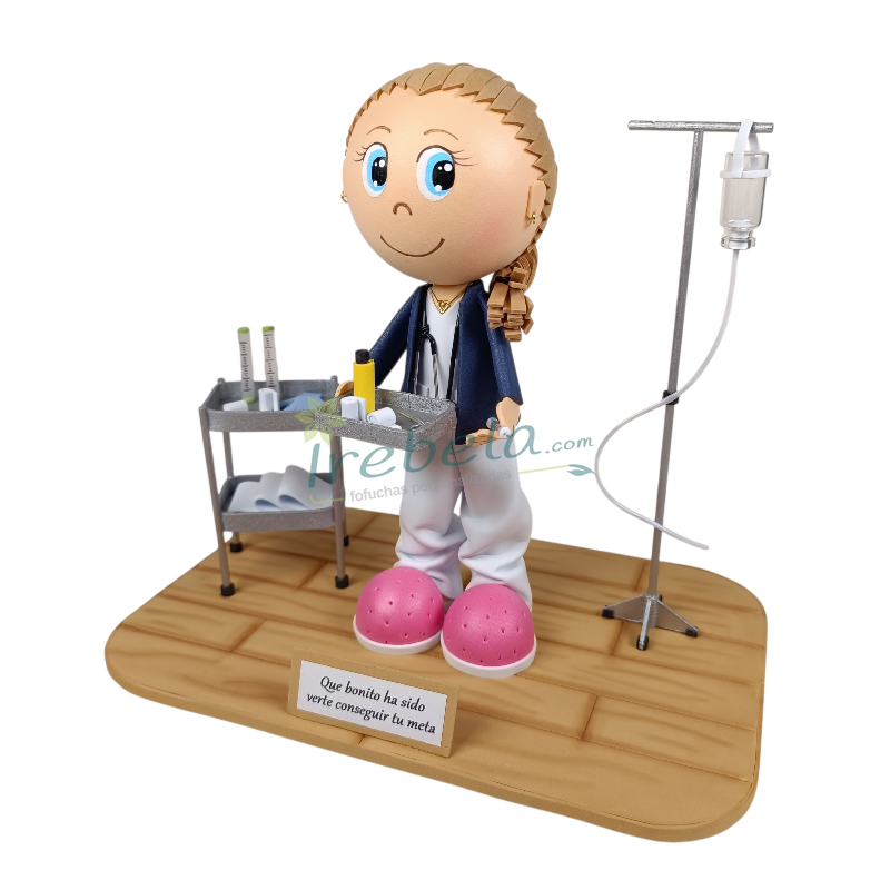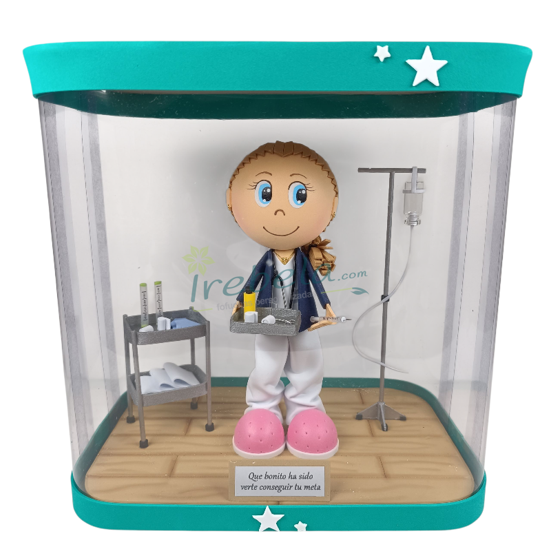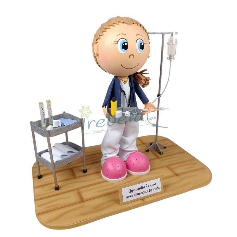 Original muñeca fofucha personalizada, representando una profesora, elaborada con bolas de porex y gomaeva de diferentes colores, así como algunos complementos en tela. Podrían realizarse variaciones en la vestimenta, color de pelo, color de ojos, peinado... (siempre bajo petición del cliente con antelación). La muñeca se ha colocado en el escen...